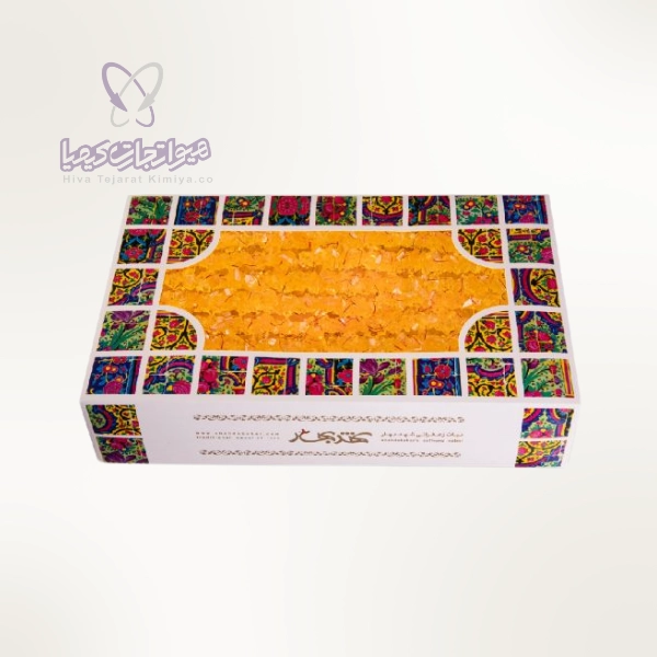 یکی از اصیلترین و خوشطعمترین محصولات زعفرانی ایرانی است. این نبات با طرح گل خشتی الهامگرفته از کاشیکاریهای سنتی ایرانی طراحی شده و جلوهای چشمنواز به بستهبندی آن بخشیده است.